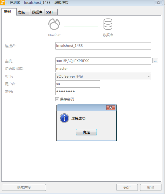 连接测试:主机名为:计算机名\安装SQL Server时自己创建的实例名