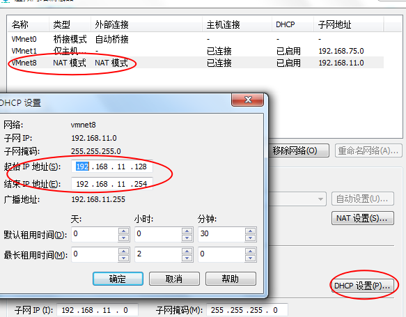 IPADDR=192.168.11.128 //本机地址,地址要在dhcp的地址范围内